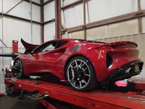 This project started as a Lotus Emira on the lift for new race-adjustable coilovers, followed by a corner balance and alignment — with plans already in place for the next round of upgrades including wheels, tires, and brakes.